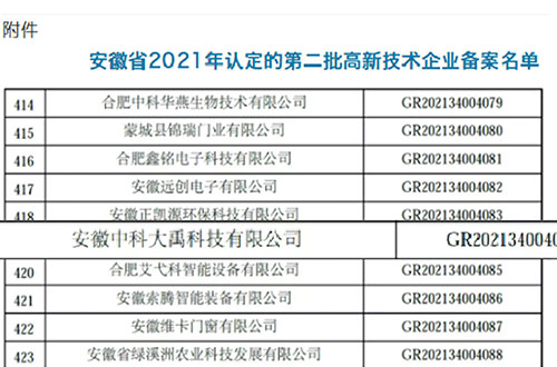 入選安徽省2021年第一批入庫科技型中小企業