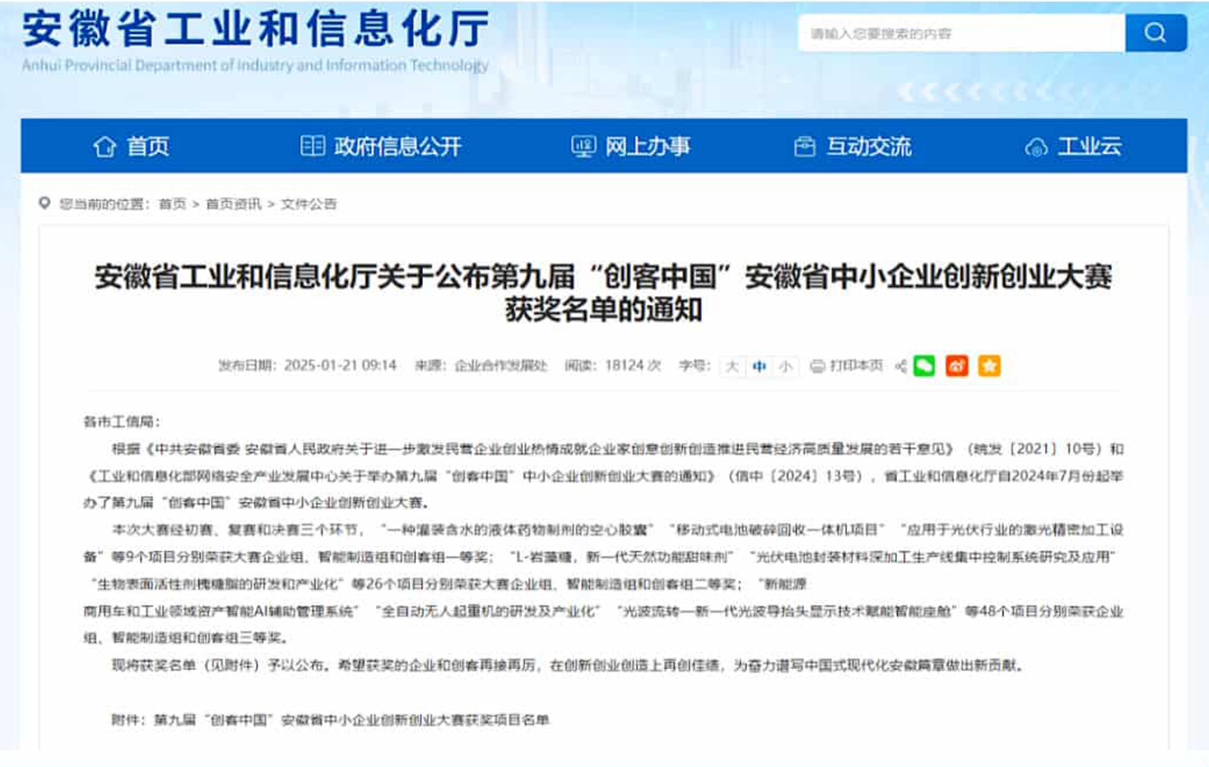 入選2022年度安徽省專精特新中小企業 入選2022年度安徽省創(chuàng)新型中小企業名單